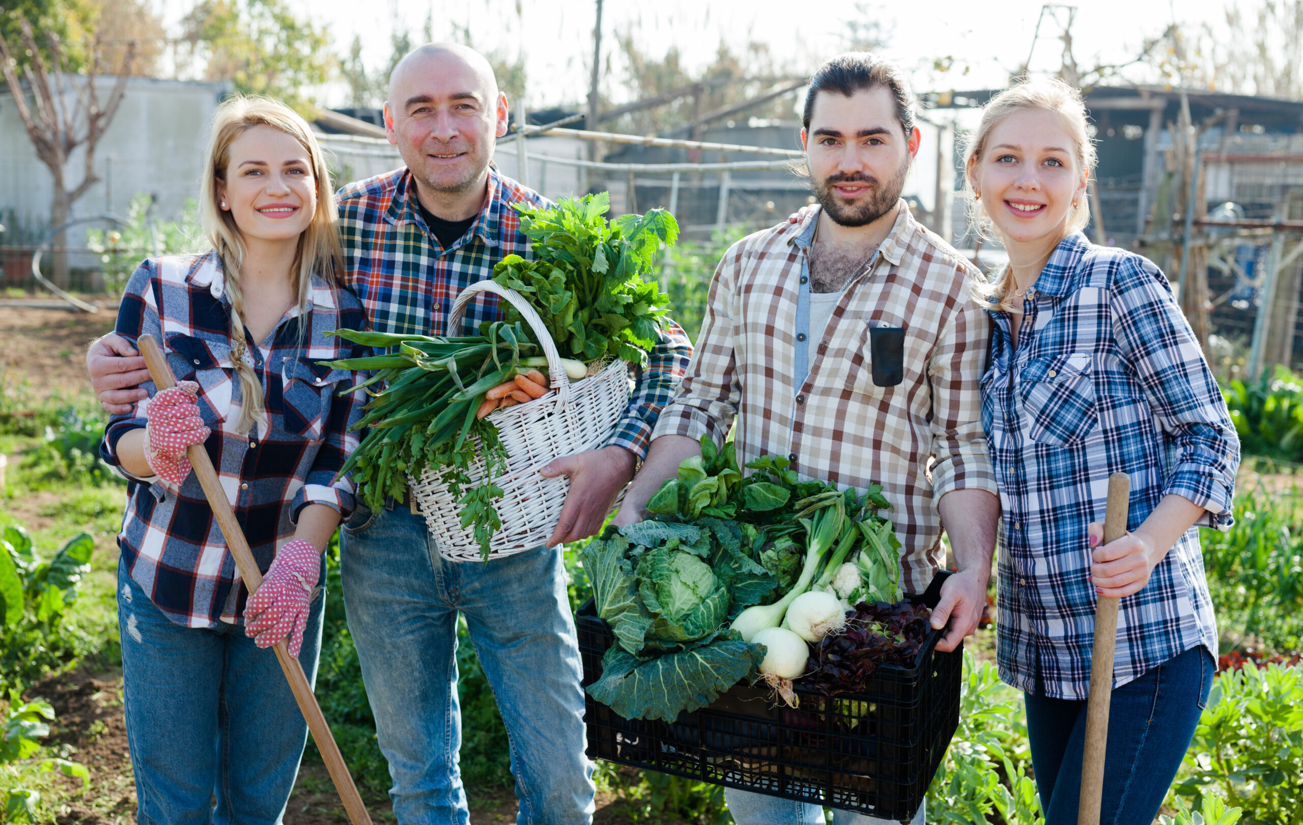 Family of four professional gardeners holding harvest of vegetables and greensVon Saskia Hendrich / 11. Dezember 2025